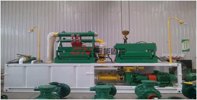 一套GNZJ752E-4N除泥器,4個(gè)除泥旋流器將分離泥漿中的15微米以上固相顆粒。