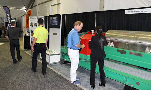 展會(huì)上很多客戶對(duì)我們的22英寸的離心機(jī)表示出了強(qiáng)烈的興趣。我們離心機(jī)的轉(zhuǎn)鼓主要部件由2205雙相不銹鋼離心澆鑄而成,其他部件由316L不銹鋼制作而成。轉(zhuǎn)鼓里的螺旋推進(jìn)器鑲嵌了超過(guò)4mm的耐磨合金片,能夠有效提高使用壽命。為了滿足加拿大市場(chǎng)所要求的CSA標(biāo)準(zhǔn),我們展會(huì)離心機(jī)配備了符合CSA防爆標(biāo)準(zhǔn)的電機(jī)(125HP和50HP)以及變頻控制柜。從技術(shù)規(guī)格上來(lái)說(shuō),冠能的GNLW553-VFD離心機(jī)與市場(chǎng)上使用廣的Alfa Laval Lynx 40相當(dāng),并且已經(jīng)在石油天然氣鉆井固控系統(tǒng)、鉆井廢棄物處理以及隧道盾構(gòu)和淤泥處理等行業(yè)得到了廣泛的應(yīng)用。
