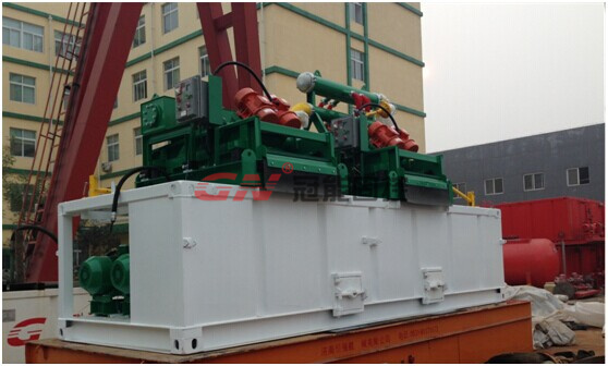2. 1臺GNZJ594E-2S12N泥漿清潔器,這臺泥漿清潔器由除砂器、除泥器以及一臺底流篩組合而成,擁有更好的清潔效果,并且設計緊湊、操作方便,得到了很多鉆井公司的青睞。